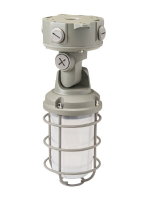 Constructed with aluminum housing and a polycarbonate lens, the fixture offers a breakage-resistant alternative to traditional glass jelly jars. An IP65 rating ensures suitability for wet locations, while five NPT knockouts and ±90° adjustability provide versatile installation options.